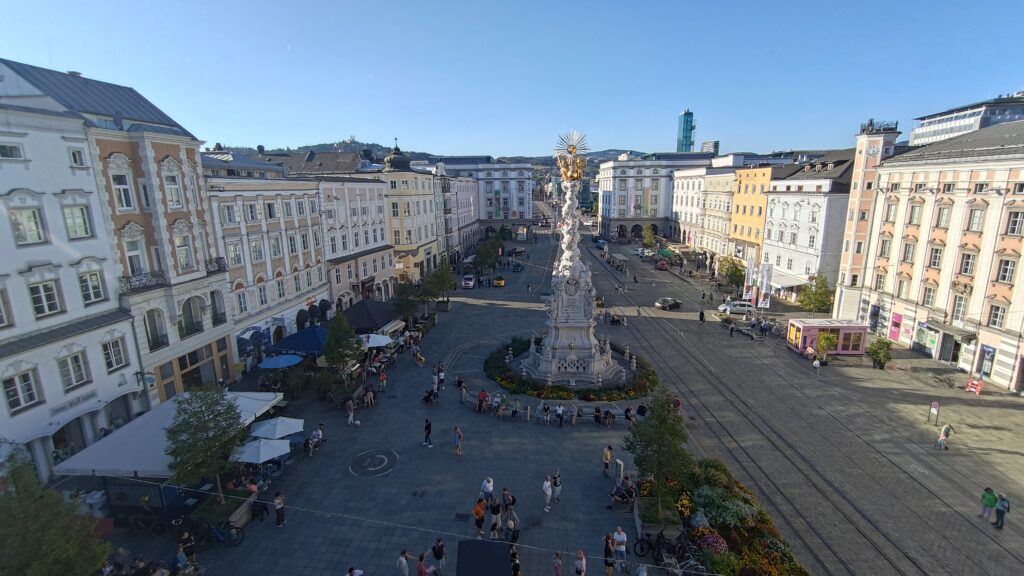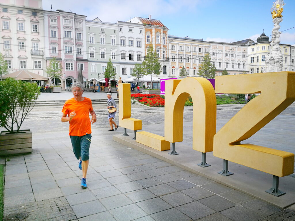 Wir laufen vom Hauptplatz durch die Innenstadt Richtung Hauptbahnhof und weiter durch die Linzer Parkanlagen zum Schlossberg und zurück zum Hauptplatz.